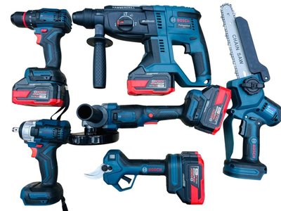BOSCH Набор сезонный 6в1: УШМ, шуруповерт, перфоратор, гайковерт, пила, секатор