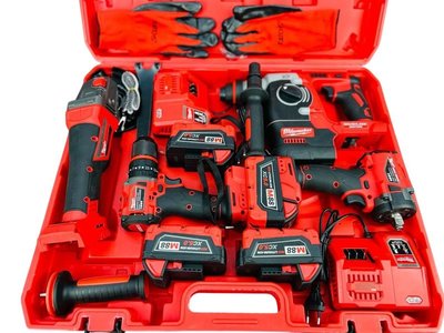 Набор 4в1 Milwaukee УШМ, шуруповерт, гайковерт, перфоратор +4 батареи, 2 зарядки 2-6