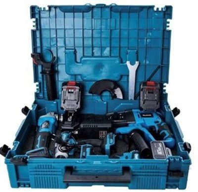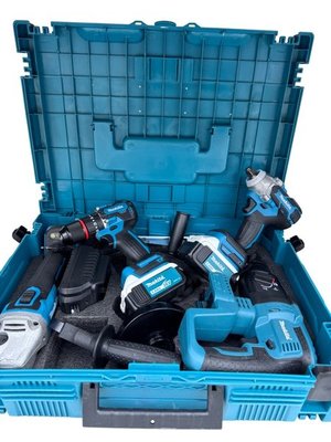 Набор бесщеточный 4в1 Makita: Шуруповерт+Гайковерт+УШМ+Перфоратор 2 АКБ